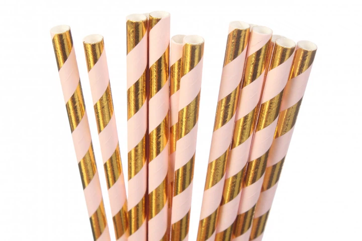 Трубочки для коктейлів, картон, довжина 19,5 см, у пакуванні 25 шт. розова із золотим