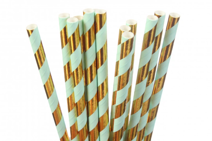 Трубочки для коктейлів, картон, довжина 19,5 см, у пакуванні 25 шт. зелена із золотим