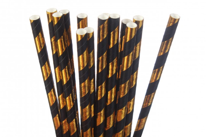 Трубочки для коктейлів, картон, довжина 19,5 см, у пакуванні 25 шт. чорна із золотим