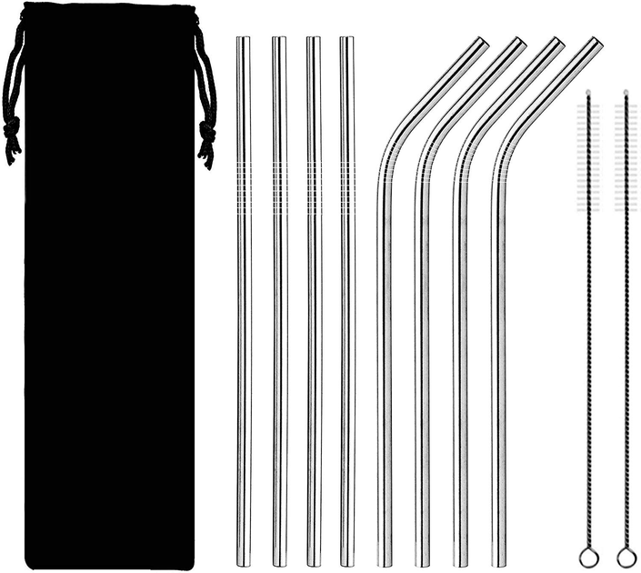 Багаторазові еко соломинки прямі з нержавіючої сталі 20 см 4 шт.