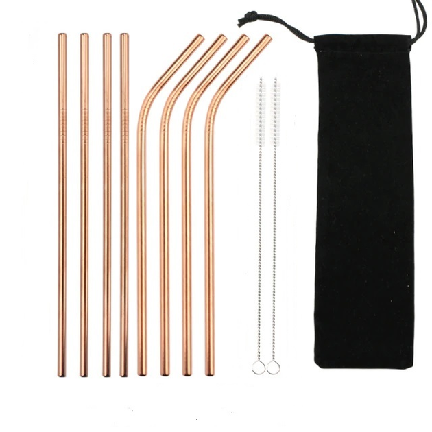 Соломки трубочки для напоїв багаторазові 4шт рожеве золото Набір металевих еко соломинок