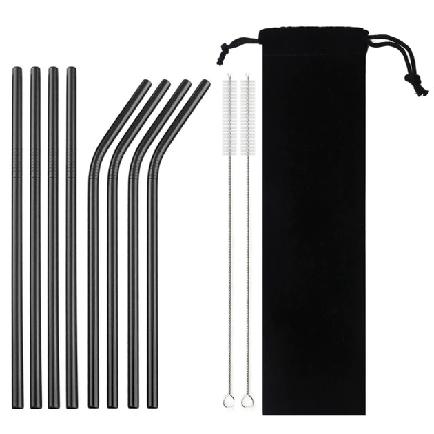 Набір із 4 металевих еко соломинок трубочок для напоїв, чорний.