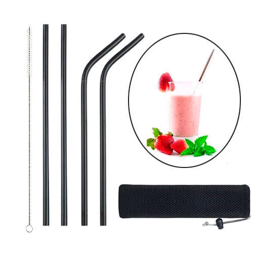 Соломки трубочки для напоїв багаторазові 4шт чорний Набір металевих еко соломинок