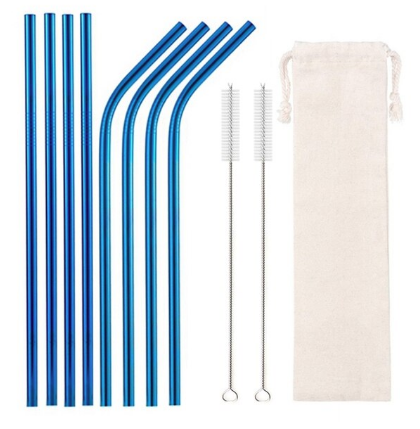 Соломки трубочки для напоїв багаторазові 4шт синій Набір металевих еко соломинок