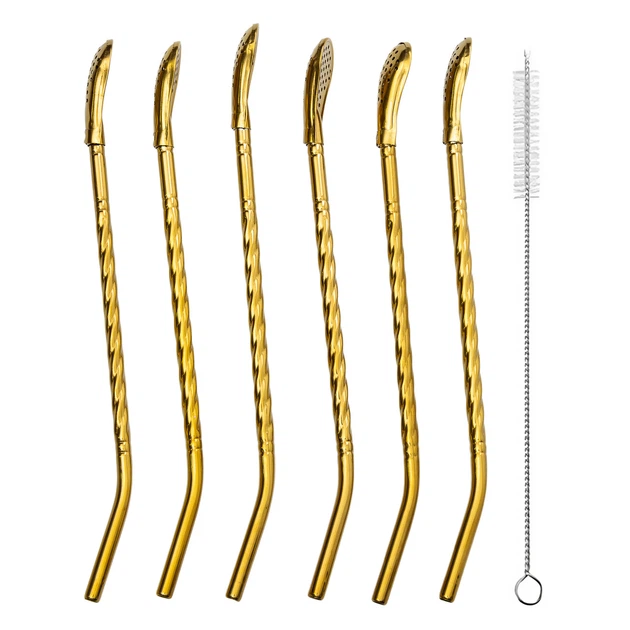 Набір соломинок-ложок багаторазових Yiwu HP-20-20 із нержавіючої сталі 6 шт Бронза