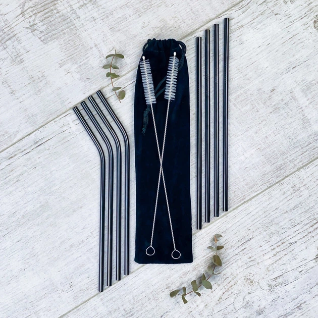 Металеві еко трубочки для коктейлів Olin&Olin Чорні багаторазові (MStraw-442BagBla)