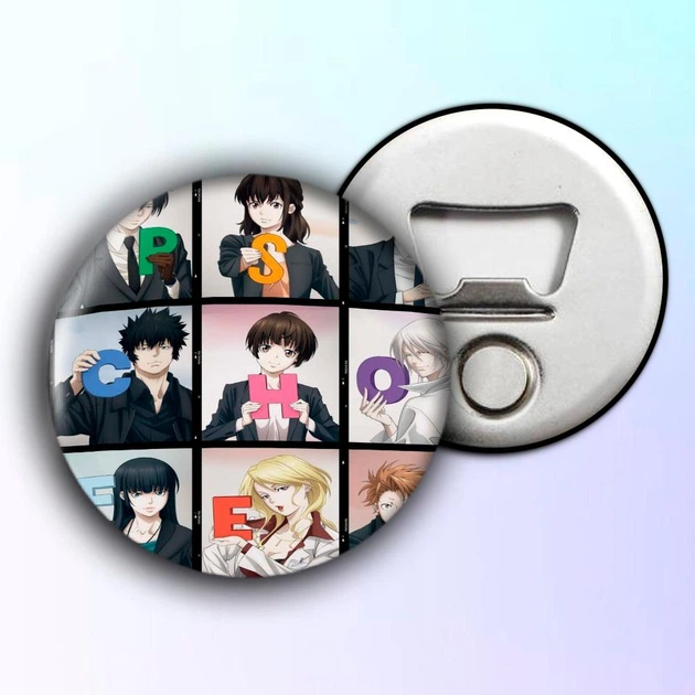 Відкривачка-магніт для пляшок Аніме Психопаспорт #0001 металевий 56 мм