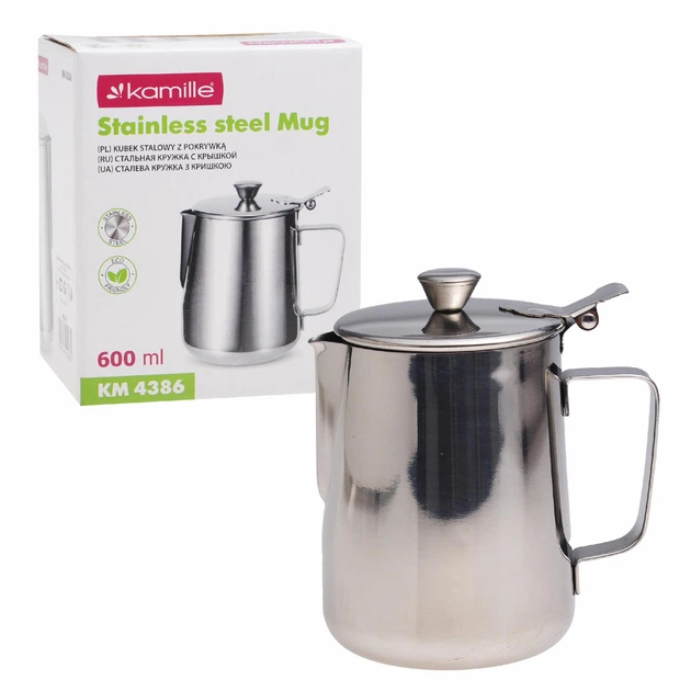 Молочник із кришкою Kamille 600мл із ручкою з нержавіючої сталі для індукції та газу KM-4386