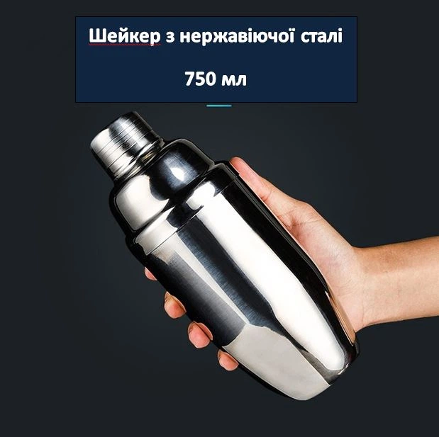 Коблер Шейкер для приготування коктейлів Poly Steel з нержавіючої сталі Барний шейкер 750 мл (М2130137)