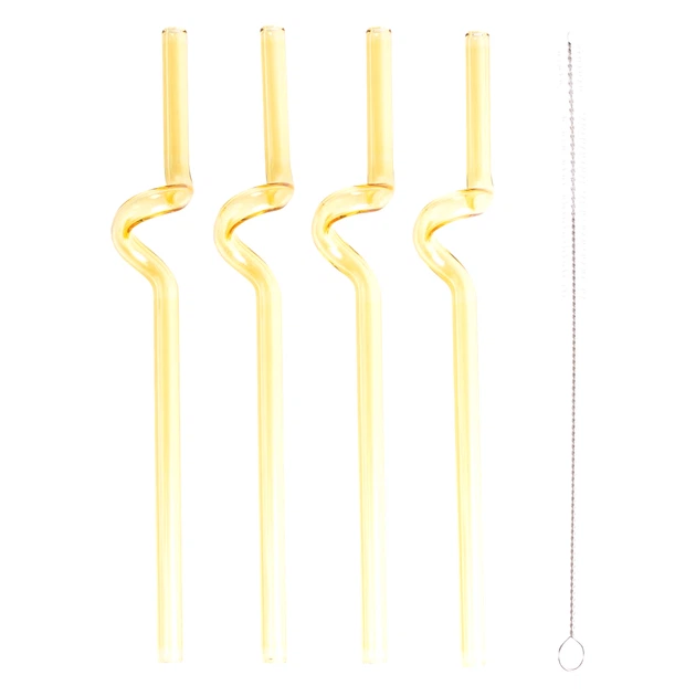 Набір соломинок для напоїв Happy Life HP-34-34Y скляних 19,5 см 4 шт Жовтий