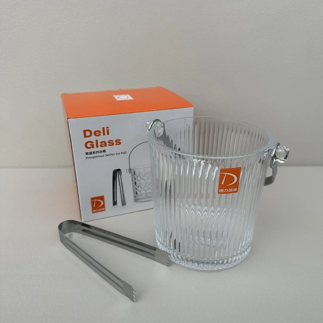 Відро для льоду із щипцями 980 мл скляне Полоска A-PLUS 3487