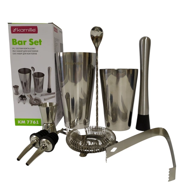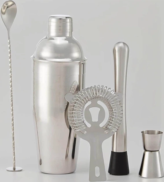 Набір для бару із 5 предметів нержавіюча сталь коктейльний шейкер, щипці та ложка Youchen MC-55T5 Сріблястий