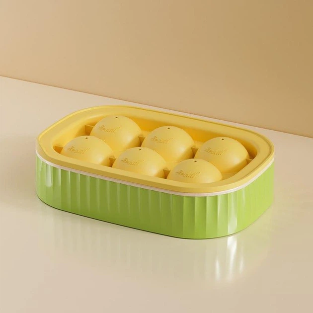 Силіконова форма для льоду "Куля" салатово-жовта, 6 комірок Corew лоток для льоду з кришкою (HbP051595)