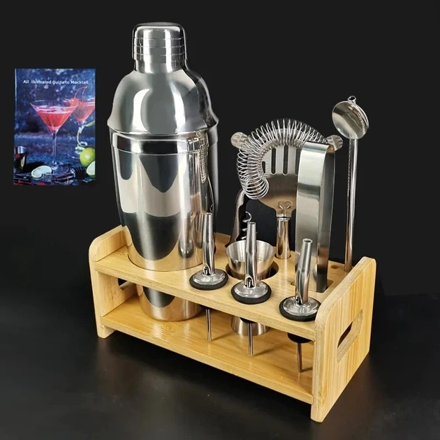 Коктейльний шейкер змішувач 750 ml набір бармена з підставкою 10 предметів