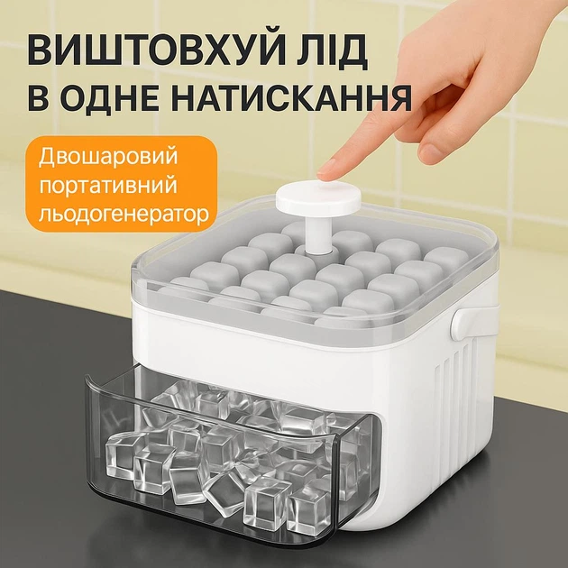 Контейнер форма для приготування та зберігання льоду на 50 кубиків з кришкою та лопаткою домашній льодогенератор Білий
