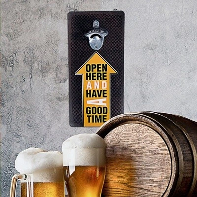 Настінна відкривачка для пляшок Open here and have a good time 32х15 см Presentville (2000003095360)