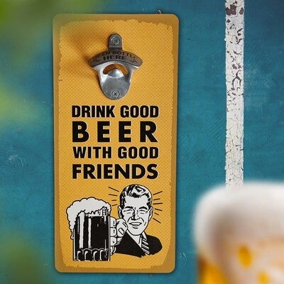 Настінна відкривачка для пляшок Drink good beer with good friends 32х15 см Presentville (2000003095308)