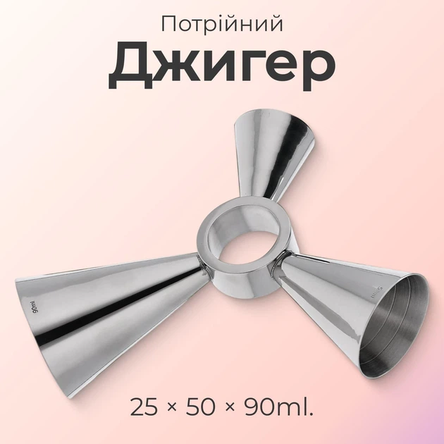 Джигер потрійний барний Olin & Olin з 3 мірниками 25/50/90 мл для коктейлів з поділками 5/10/15/20/25/30/35/40/45/50/75/90 м