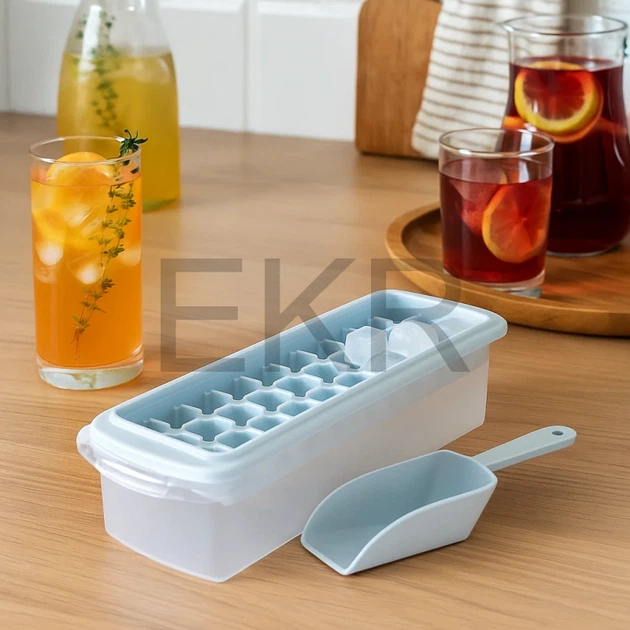 Форма для льоду з кришкою, контейнером та лопаткою для кубиків льоду 28109 см Синя (R92485)