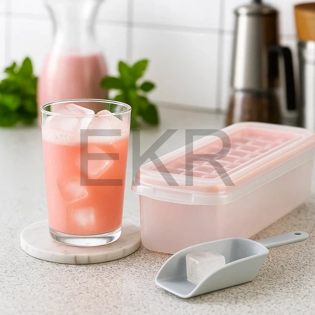 Форма для льоду з кришкою, контейнером та лопаткою для кубиків льоду 28109 см Рожева (R92485)
