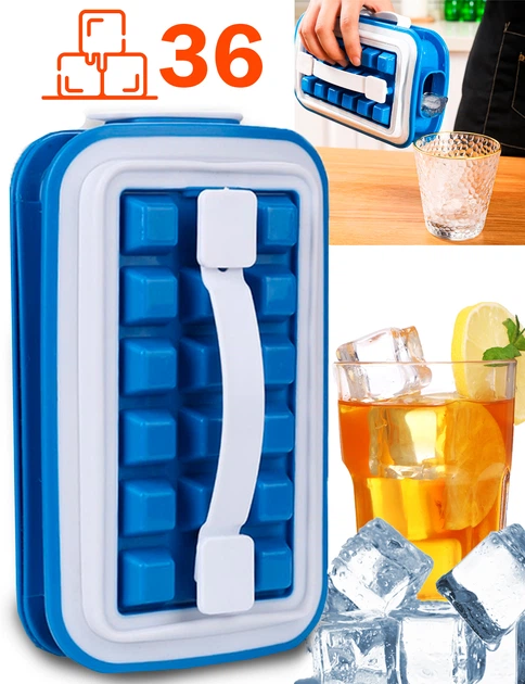 Форма для льоду лоток Wanhengda Синій портативний силіконовий складений на 36 кубиків з кришкою
