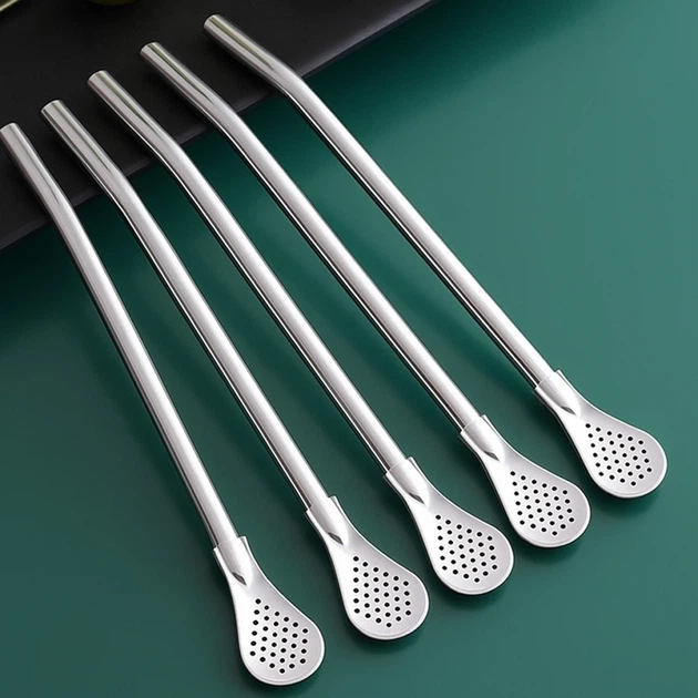 Металеві трубочки для коктейлів – набір із 5 штук з ситом.