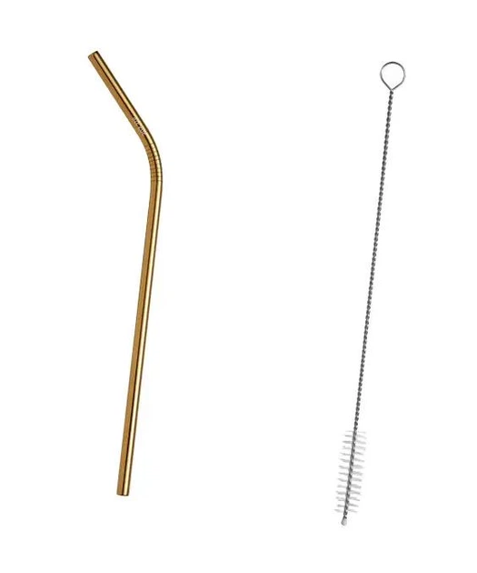 Трубочка багаторазова для коктейлів та напоїв + щітка для чищення Нержавіюча сталь Золотистий