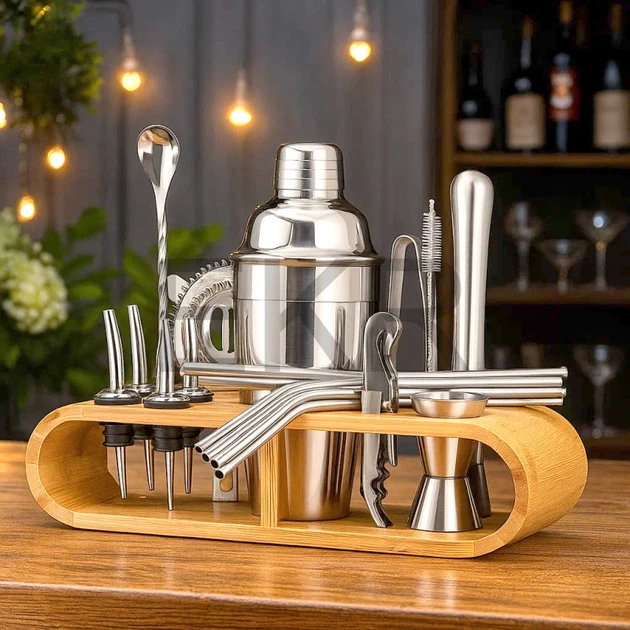 Комплект для приготування коктейлів 12 в 1 BarT 750 мл з підставкою набір для бару (HbP051510)