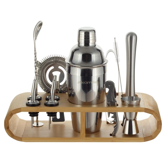 Набір для бару Kamille KM-7765 з нержавіючої сталі на бамбуковій підставці 20 предметів (127-84-7765)