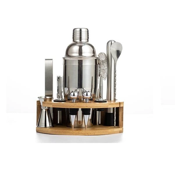 Набір для бару 12 в 1 для приготування коктейлів Basimc 750 мл з дерев'яною підставкою, набір бармена (R051212)
