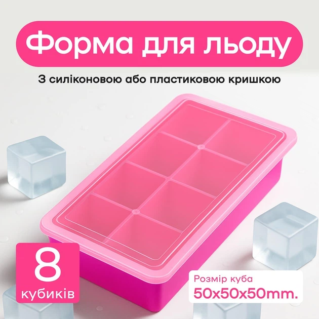Силіконова форма для льоду великий куб з кришкою Olin & Olin 8 кубиків по 5 х 5 см Малиновий (0581-XL-8-Сrimson)