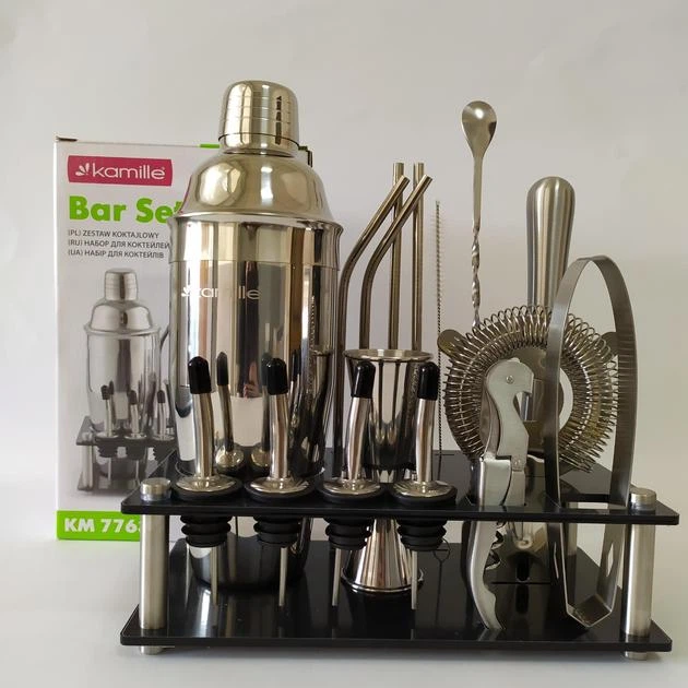 Барний комплект набір бармена шейкер з аксесуарами з нержавіючої сталі для приготування напоїв коктейлів 7 елементів (481417