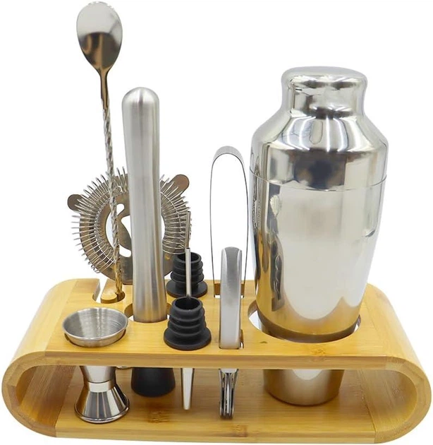 Комплект для приготування коктейлів 10в1 Vexal 700 мл з дерев'яною підставкою (М1617)