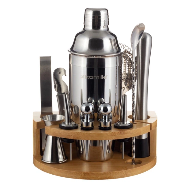 Набір бармена 11 предметів з підставкою, нержавіюча сталь + бамбук Kamille KM-7762
