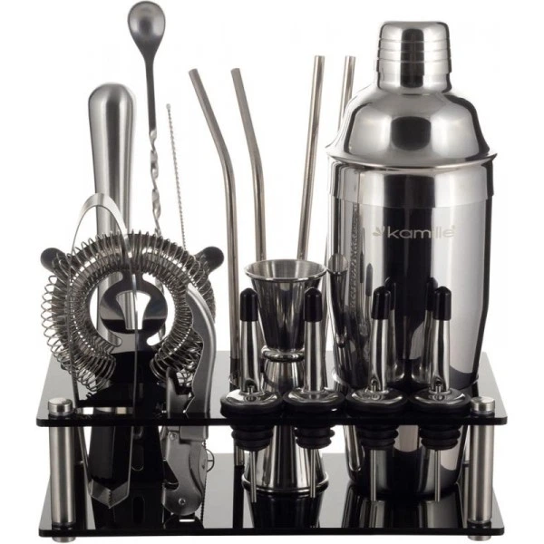 Набір бармена Kamille для приготування коктейлів 17 предметів (барсет) на підставці (органайзер) (110036)