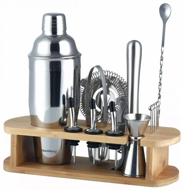 Набір бармена Kamille для приготування коктейлів 20 предметів на дерев'яній підставці (органайзер)