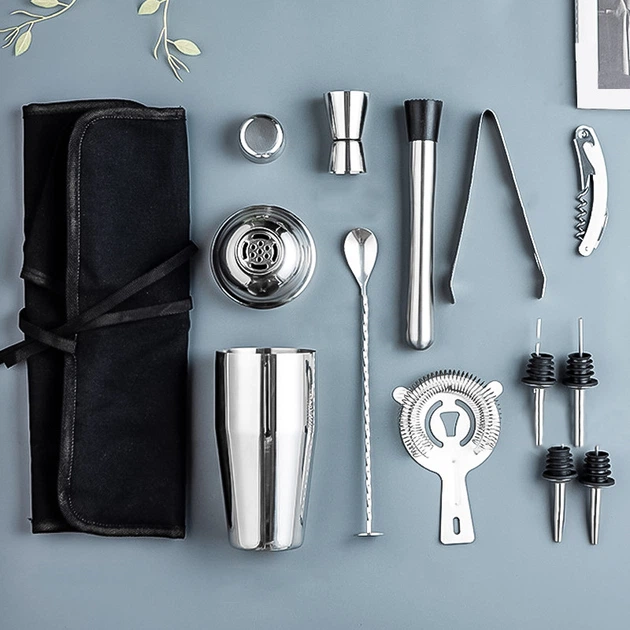 Набір для бару з 12 предметів із нержавіючої сталі з чохлом Youchen MC-B9 Сріблястий