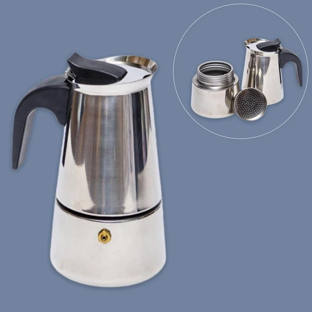 Гейзерна кавоварка для плити із нержавіючої сталі на 4 чашки