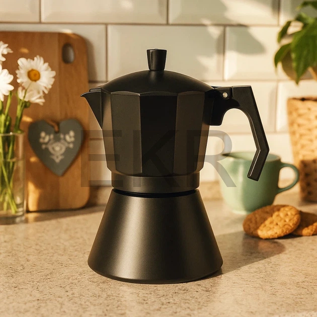 Гейзерна кофеварка на 9 чашок, алюмінієва, чорна Edenberg EB-1817