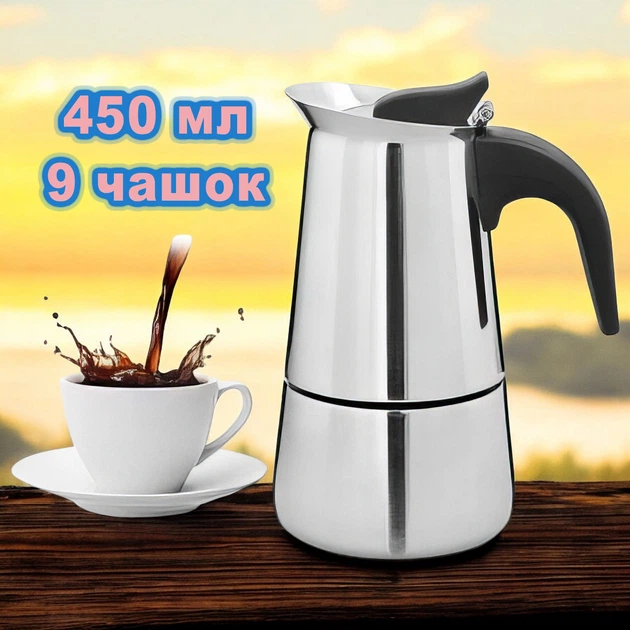 Гейзерна кавоварка на 9 чашок BN151, Нержавіюча сталь, 450мл (4-1767960148)