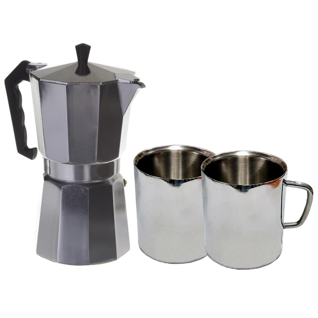Набір гейзерна кавоварка з термочашками KITUA 3 предмети