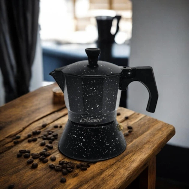 Кавоварка гейзерна алюмінієва Maestro 450мл чорна для приготування кави та еспресо кавоварка (DR-P33IT)