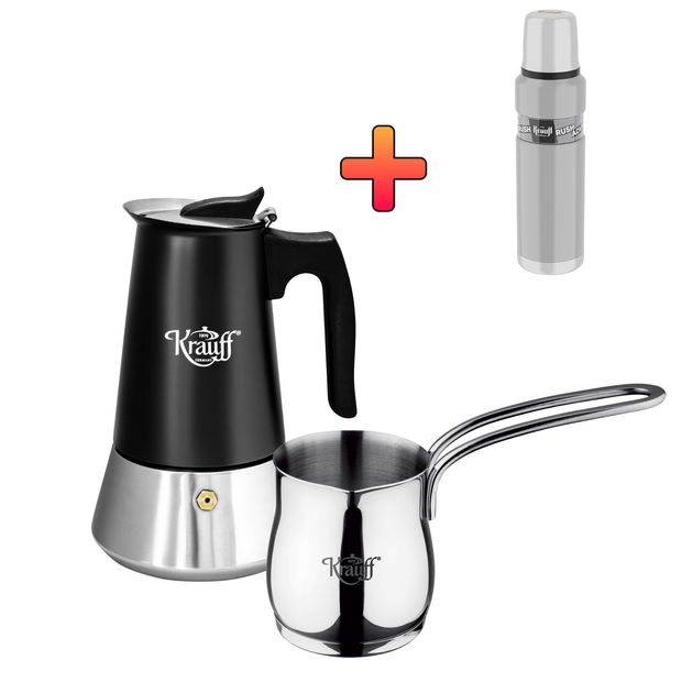 Набір з кавоварки гейзерної 300 мл та турки 720 мл Krauff + ПОДАРУНКИ: Термос Scout Skills