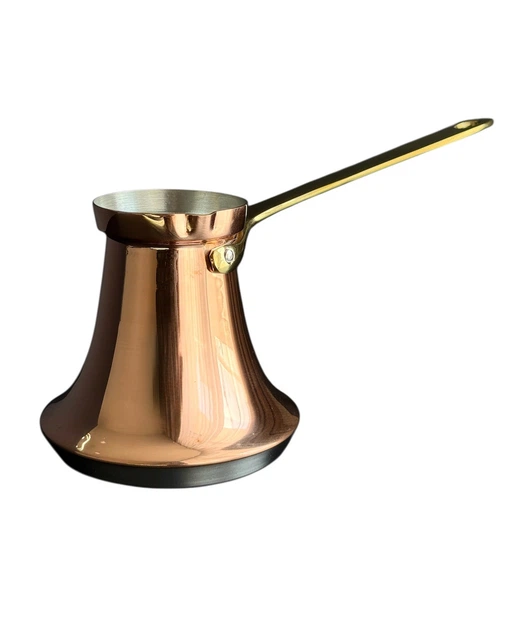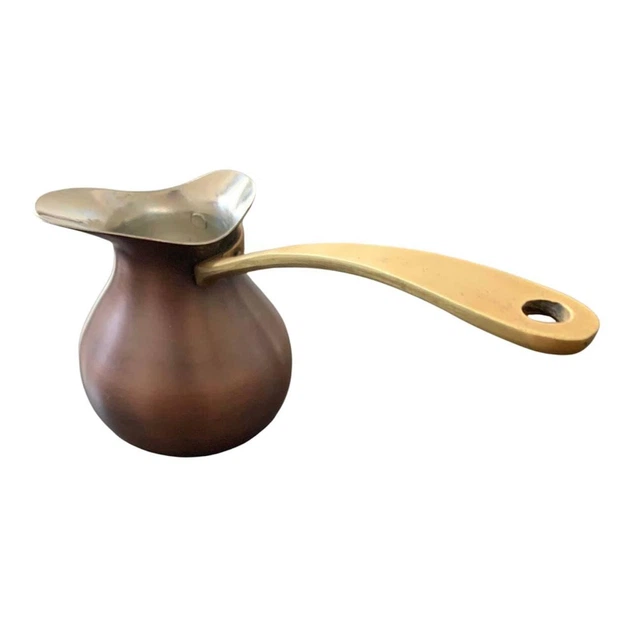 Мідна джезва для кави 200 мл з ручкою з бронзи та покриттям з харчового олова колір патину
