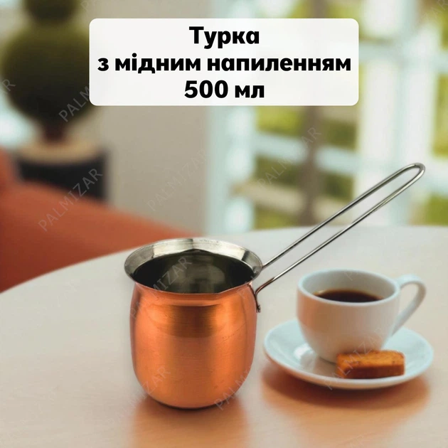 Турка з мідним напиленням, об'єм 500 мл, нержавіюча сталь, мідний колір