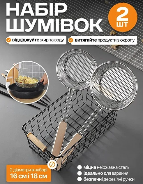 Сито друшляк набір з 2х шт, шумівка з нержавіючої сталі для каструль на 2-5 л