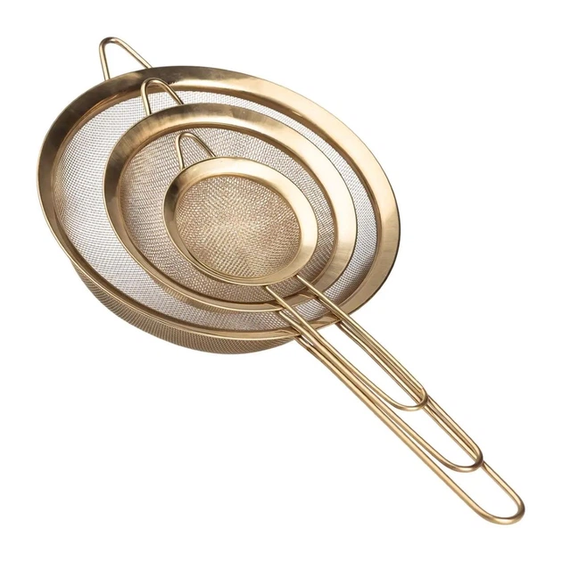 Набір ситечок 3 штуки з нержавіючої сталі золотистий для чаю та борошна універсальне кухонне приладдя (524105)