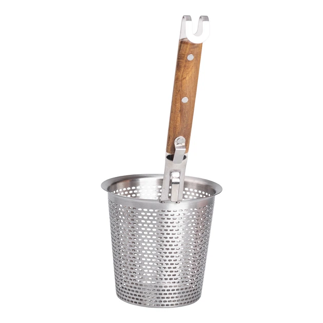 Сито-друшляк для варіння макаронів діаметр 14 см нержавіюча сталь з дерев'яною ручкою