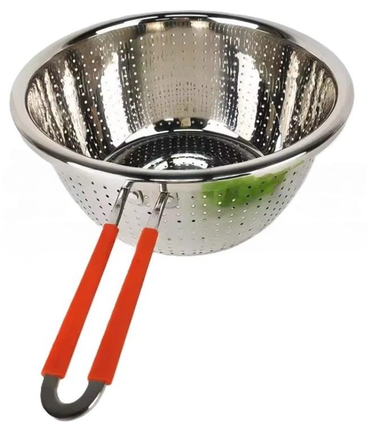 Друшляк 18x8.0 см сито з довгою ручкою плоским дном з нержавіючої сталі Червоний