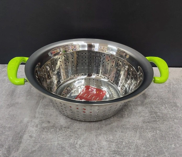 Друшляк d-22 см з двома салатовими силіконовими ручками з нержавіючої сталі A-PLUS 2206